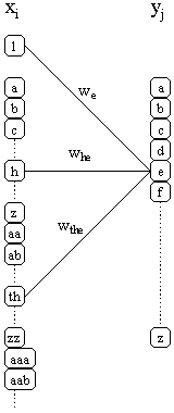 Then yi is the probability that character i is next. For example, P(e|th) = g(we + whe + wthe).