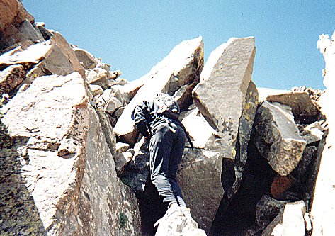Mt. Sneffels. We ascended the SW ridge on the left and descended the SE ridge and scree on the right.
